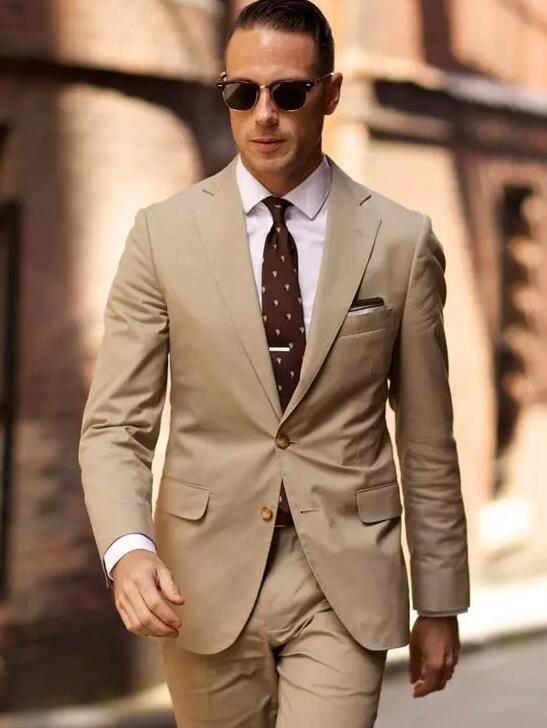 季節(jié)交替,春夏顏色多數(shù)以淺色為主,而卡其色這種淡色系就最能夠代表春夏季節(jié)。不會過于沉色,而又不會顯得過于灰白,整體以潔白的恤衫配上外套鈕扣,加上色彩鮮艷的口袋方巾已經(jīng)可以出席盛夏派對、酒會。
